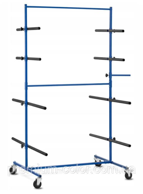 Спеціальна платформа для зберігання і висихання бамперів і спойлерів. Також може використовуватися в меблевому виробництві. Робоча поверхня стійки прогумована. Конструкція мобільна, легко закачувати та викотувати для сушіння деталей. Максимальне навантаження 160 кг. Навантаження на одну секцію 20 кг.